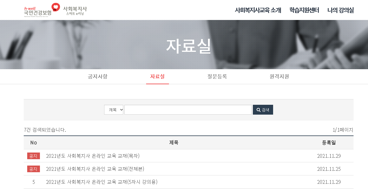자료실에서는 현재 2021년도 사회복지사 온라인 교육 교재가 확인이 되어집니다. 다음 2022년도 사회복지사 사이버 교육이 진행되어지면 해당 자료가 배포가 되어질 것 같네요.