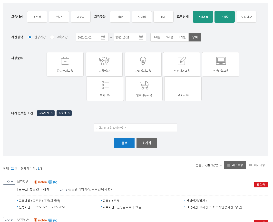 교육에 관련된 내용은 과정검색 및 신청을 참고하시면 되니 확인 후에 진행해주시면 될 것 같습니다. 그럼 교육 확인 잘하시고 사이버 보건교육 확인 잘하세요.