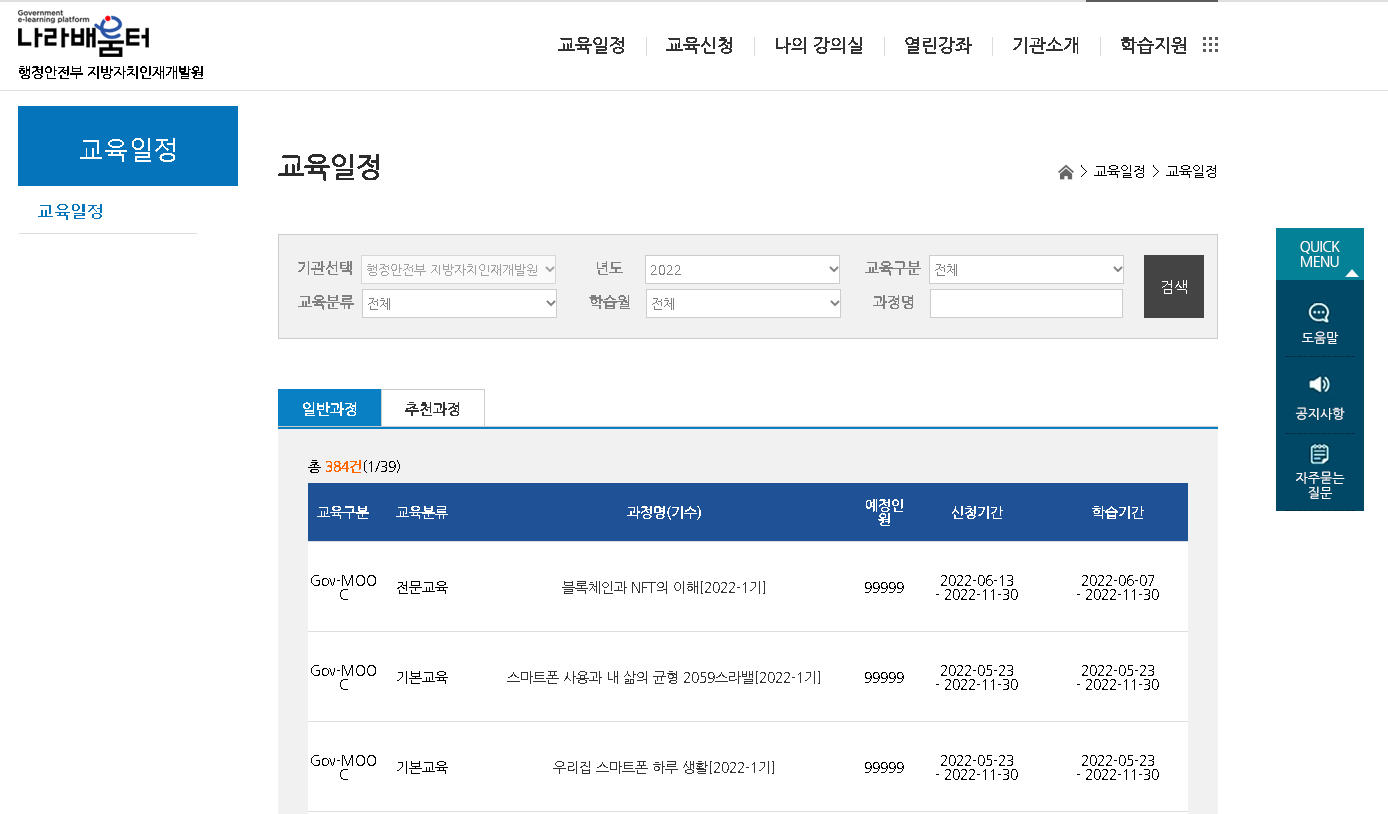 들어가보시면 교육일정 확인 및 다양한 교육신청 그리고 학습까지 진행할 수 있도록 서비스가 제공됩니다. PC와 더불어 모바일에서도 교육이수가 가능하다니 이용 잘 해보시면 좋을 것 같습니다.