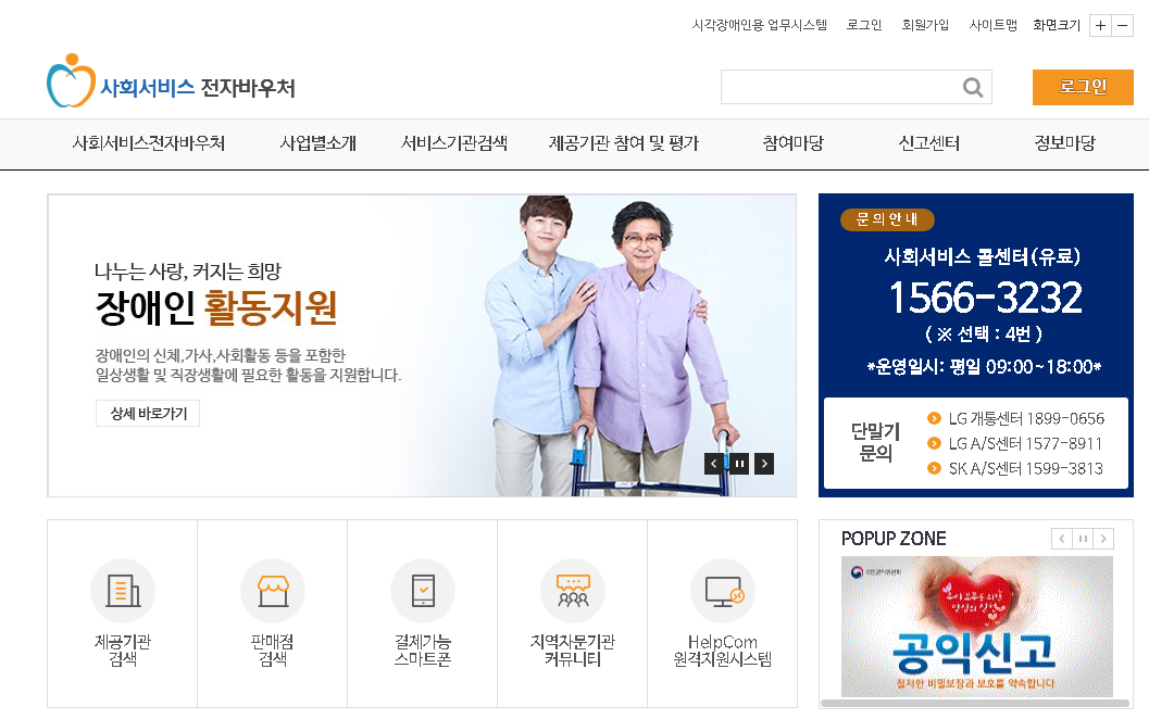 해당 시스템을 통하면 시군구에서 수혜자로 인정받은 대상자라면 바우처를 통하여 사회서비스를 제공받을 수 있습니다. 발달재활서빗, 언어발달지원사업, 임신출산진료비 지원제도, 에너지바우처사업 등과 연계가 되어서 현재 활발하게 서비스가 되어지는 것 같습니다.