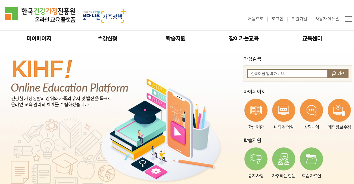 한국건강가정진흥원 온라인 교육 플랫폼 (www.edu.kihf.or.kr)