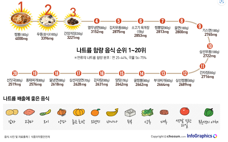 우리나라 국민 한 사람의 나트륨 하루 섭취량은 2011년 기준 4791mg으로 세계보건기구(WHO) 권고 기준(2000mg)의 두 배가 넘는다...