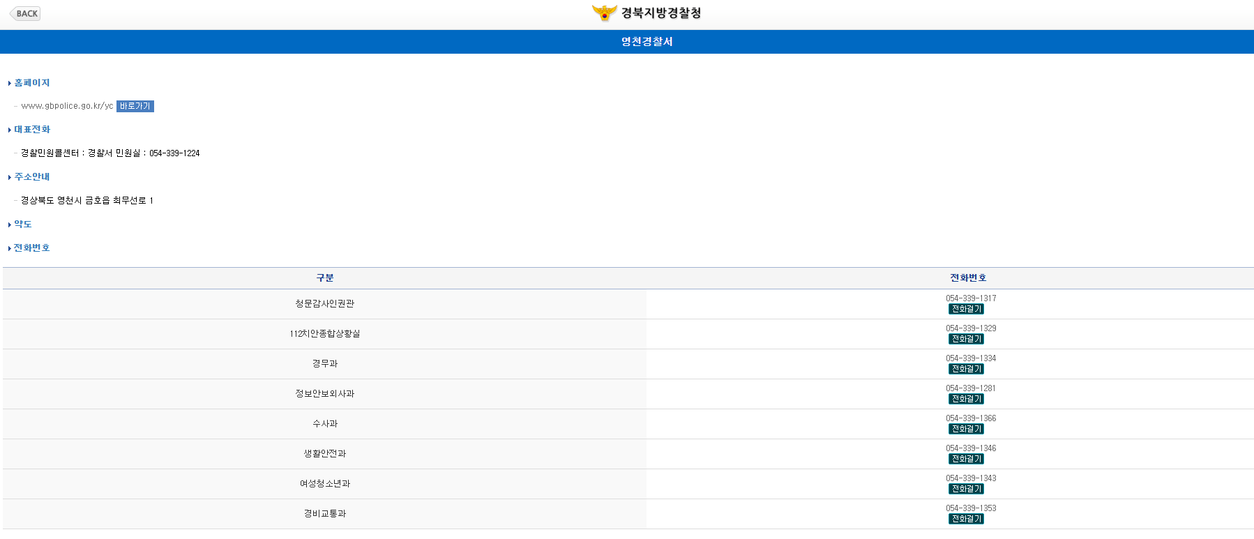 영천경찰서를 이용하실 때 민원을 전화로 하시려면 일반적으로는 경찰민원콜센터의 연락처인 182를 이용하실 수 있습니다. 그 외에는 경북 경찰청의 민원실의 전화번호인 '054 339 1224'를 이용하실 수도 있다고 하니 참고하시고 이용해보시기 바랍니다.