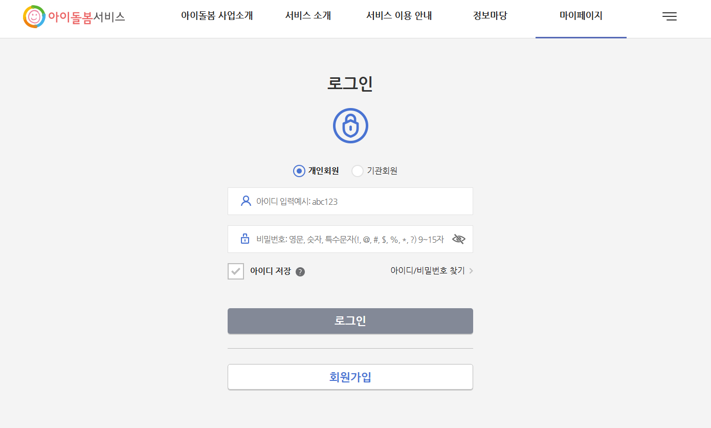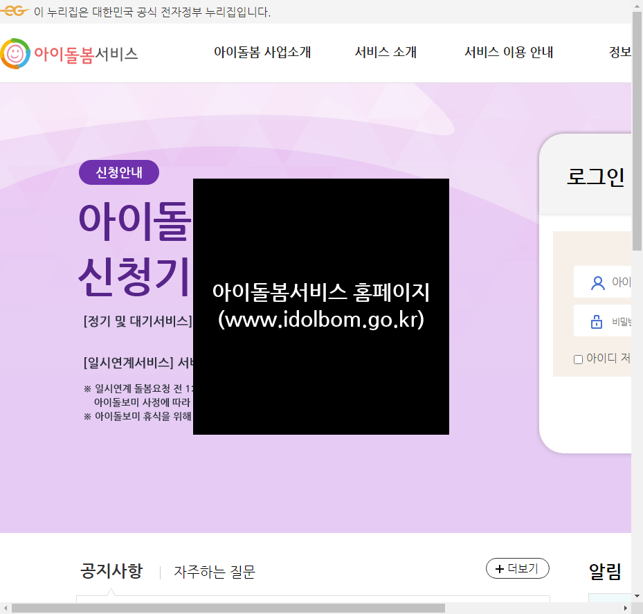 아이돌봄서비스 사업과 지원안내 등을 확인하실 수 있는 온라인 홈페이지입니다. 개인회원 및 기관회원 분들은 로그인을 하시고 이용해보시기 바랍니다.