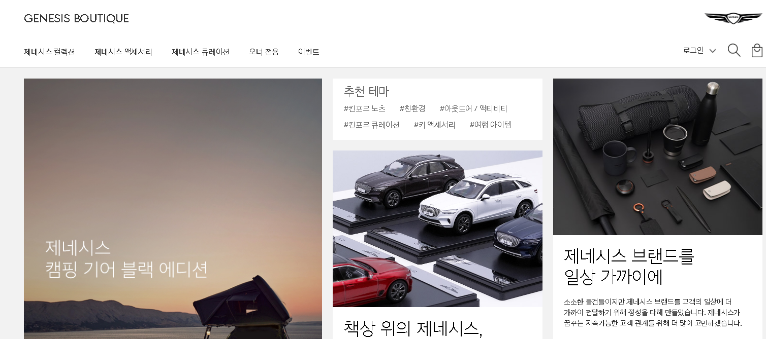 제네시스 브랜드의 차량 액세서리, 라이프스타일 상품, 오너 전용 서비스를 확인하기 위해서 제네시스 부티크를 이용하실 수 있습니다. 특히 럭셔리 라이프스타일 편집숍으로 다양한 컬렉션, 큐레이션, 콜라보레이션 등의 카테고리 제품을 확인하실 수 있다고 하네요.
