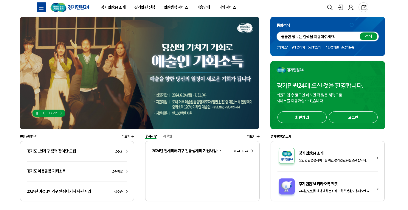 경기민원24 홈페이지는 경기도민 여러분들에게 편리하고 효율적인 행정 서비스를 제공하는 서비스입니다. 잘 이용하시고 편리하게 활용해보시기 바랍니다.