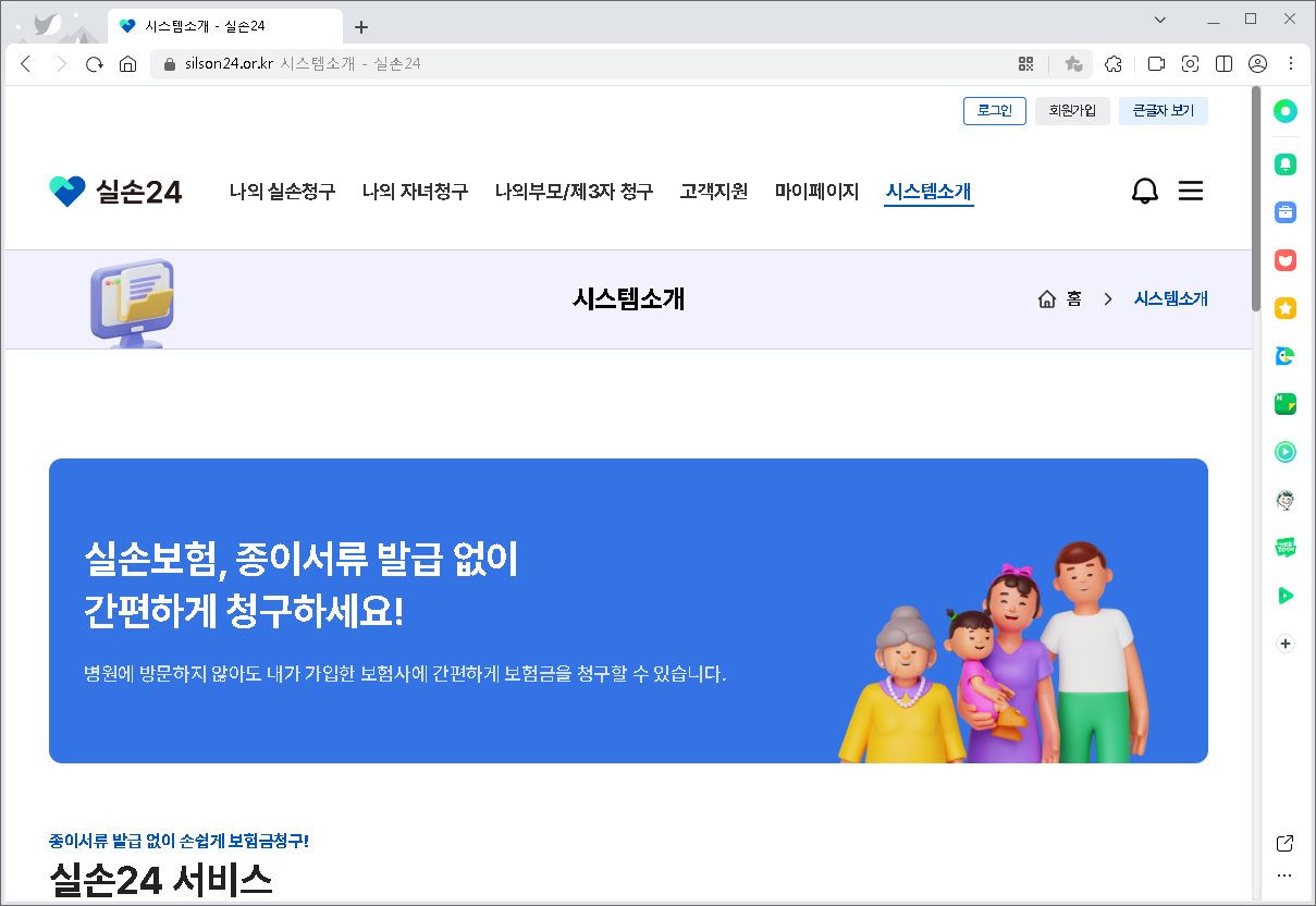 실손24시 홈페이지 주요 기능