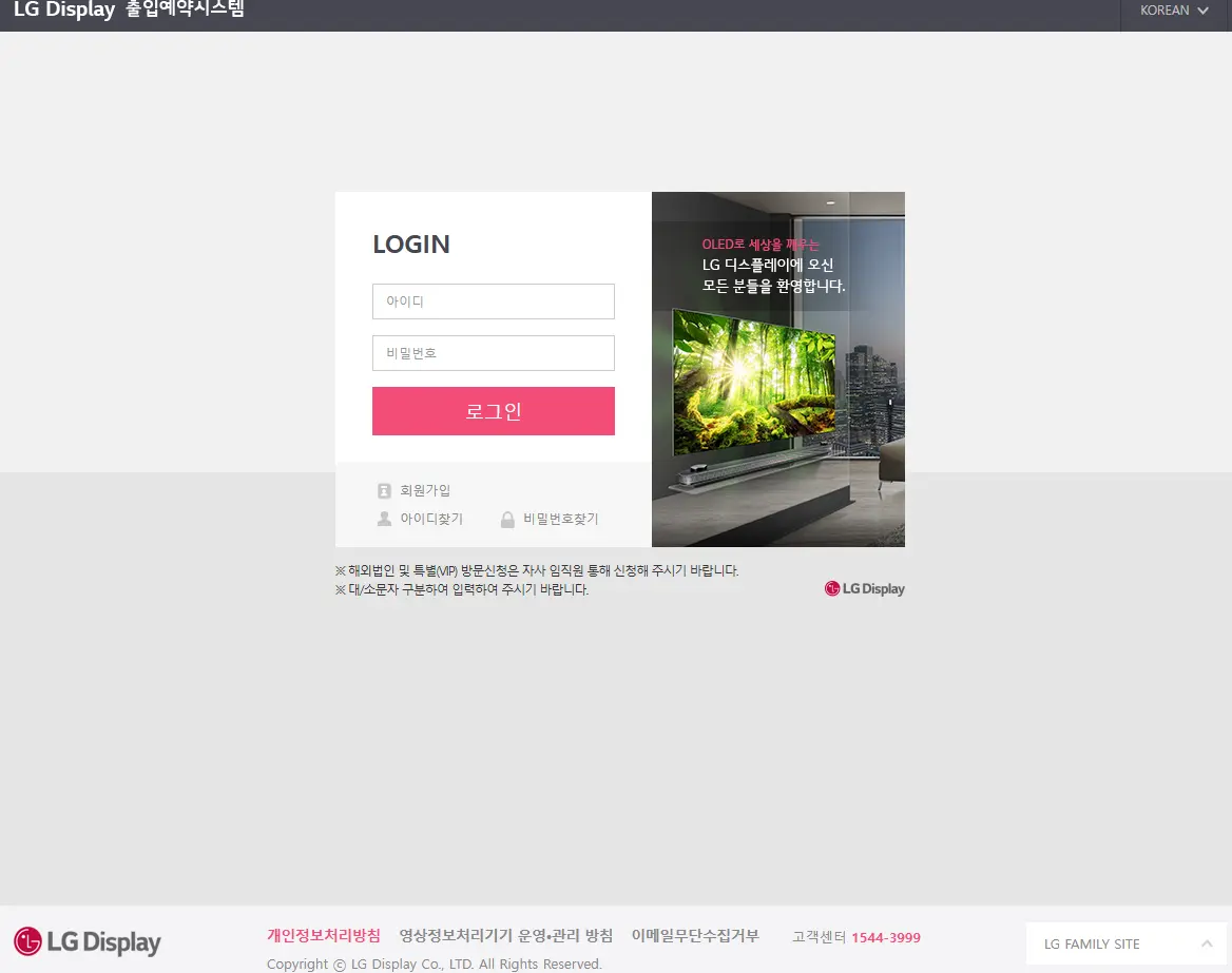 LG디스플레이 출입예약시스템을 이용해 더욱 편리하고 안전하게 사업장을 방문하세요. 궁금한 점이 있다면 언제든지 문의해 보세요.
