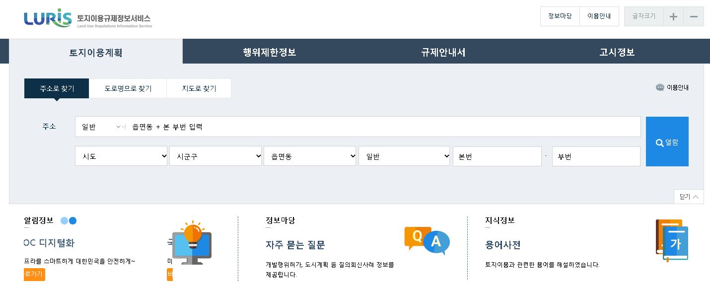 토지이용규제정보서비스 (http://luris.molit.go.kr)