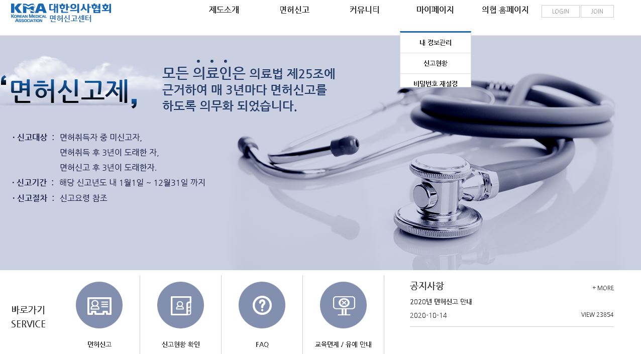 KMA 대한의사협회 면허신고센터 홈페이지 바로가기