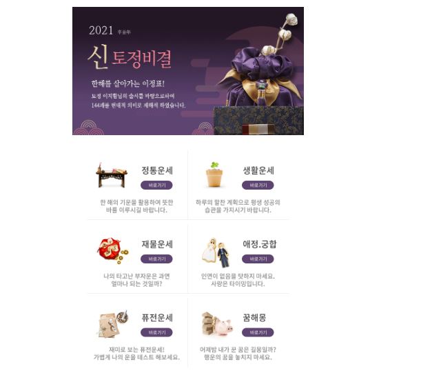 정통신년운세 같은 경우는 2021 신토정비결을 통하여 결과를 확인하시면 됩니다.