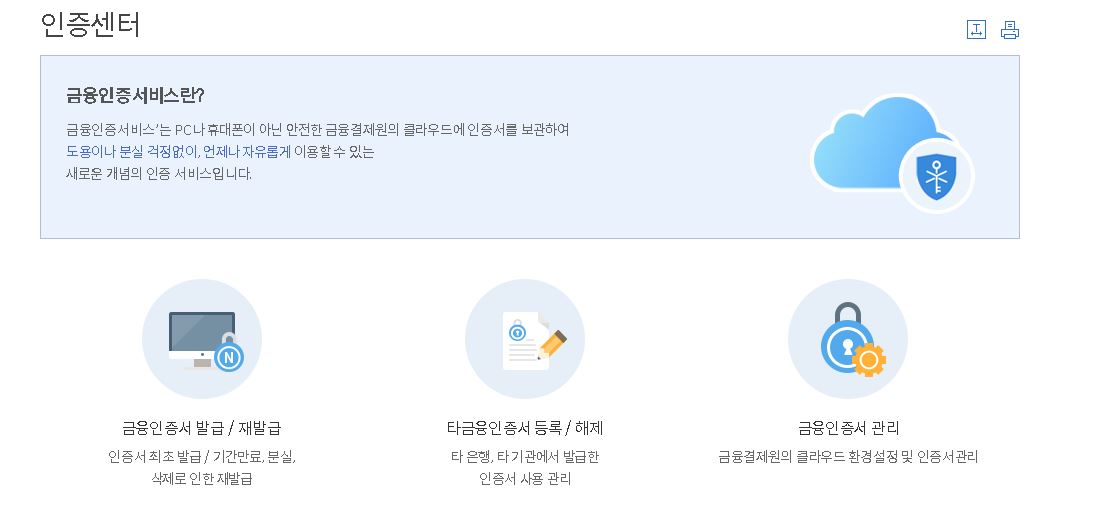 인증센터를 통하여 인증서를 발급 받고 이를 기반으로 신한은행 인터넷뱅킹을 이용 가능합니다.