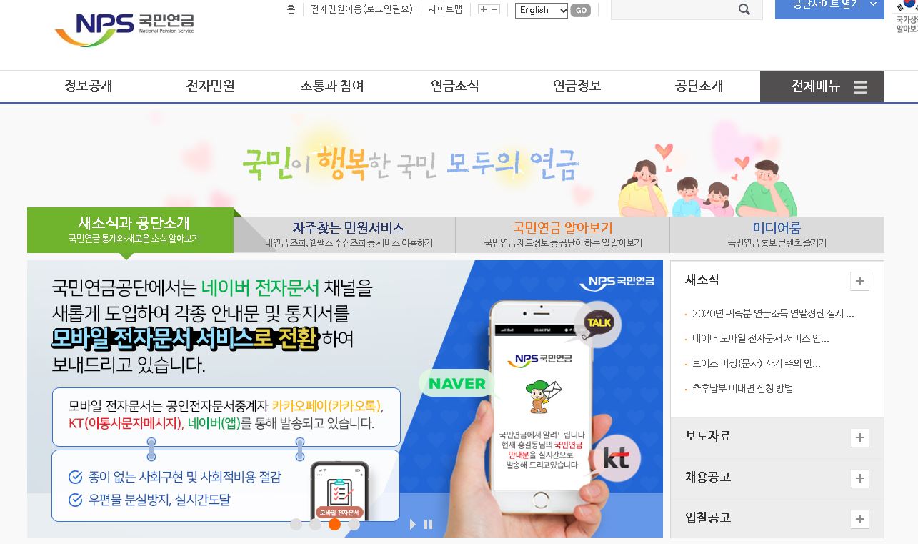 www.nps.or.kr 국민연금관리공단 홈페이지 접속