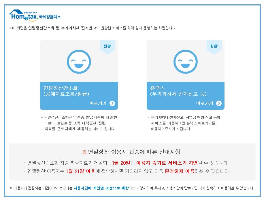 국세청 연말정산 간소화서비스 바로가기