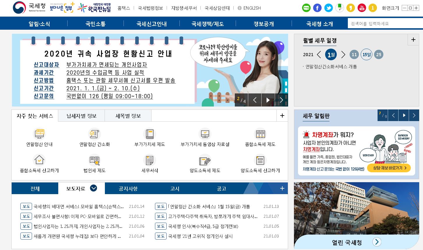 근로자 분들이 하셔야 하는 업무인 연말정산 시즌이 다가왔습니다. 2020 국세청 연말정산 간소화 서비스가 오늘 2021년 1월 15일부터 국세청 홈택스 홈페이지를 통해서 시작이 되어졌는데요. 때문에 홈택스를 통하여 연말정산을 하시면 된다고 합니다.