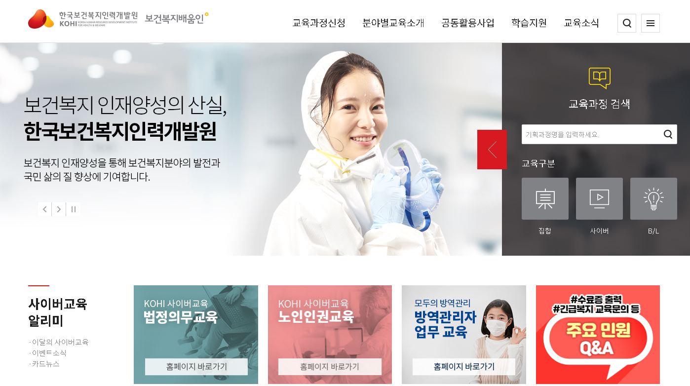한국보건복지인력개발원 사이버교육센터 (https://edu.kohi.or.kr)
