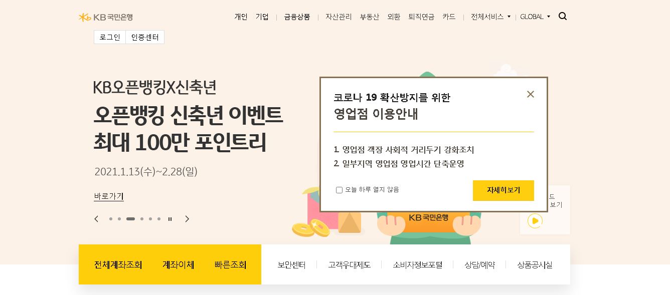 KB금융그룹의 시중은행으로써 설립되어서 운영중인 KB국민은행은 전국에 많은 지점이 있습니다. 그만큼 많은 분들이 국민은행을 이용하여 예금, 적금, 대출 등의 서비스를 이용하고 있습니다. 이런 국민은행은 직접 지점에 방문을 하셔서 이용도 많이 하지만 인터넷뱅킹이나 스마트뱅킹도 많이 활용이 되어지고 있습니다.