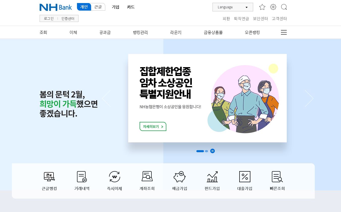 농협 개인인터넷뱅킹 바로가기