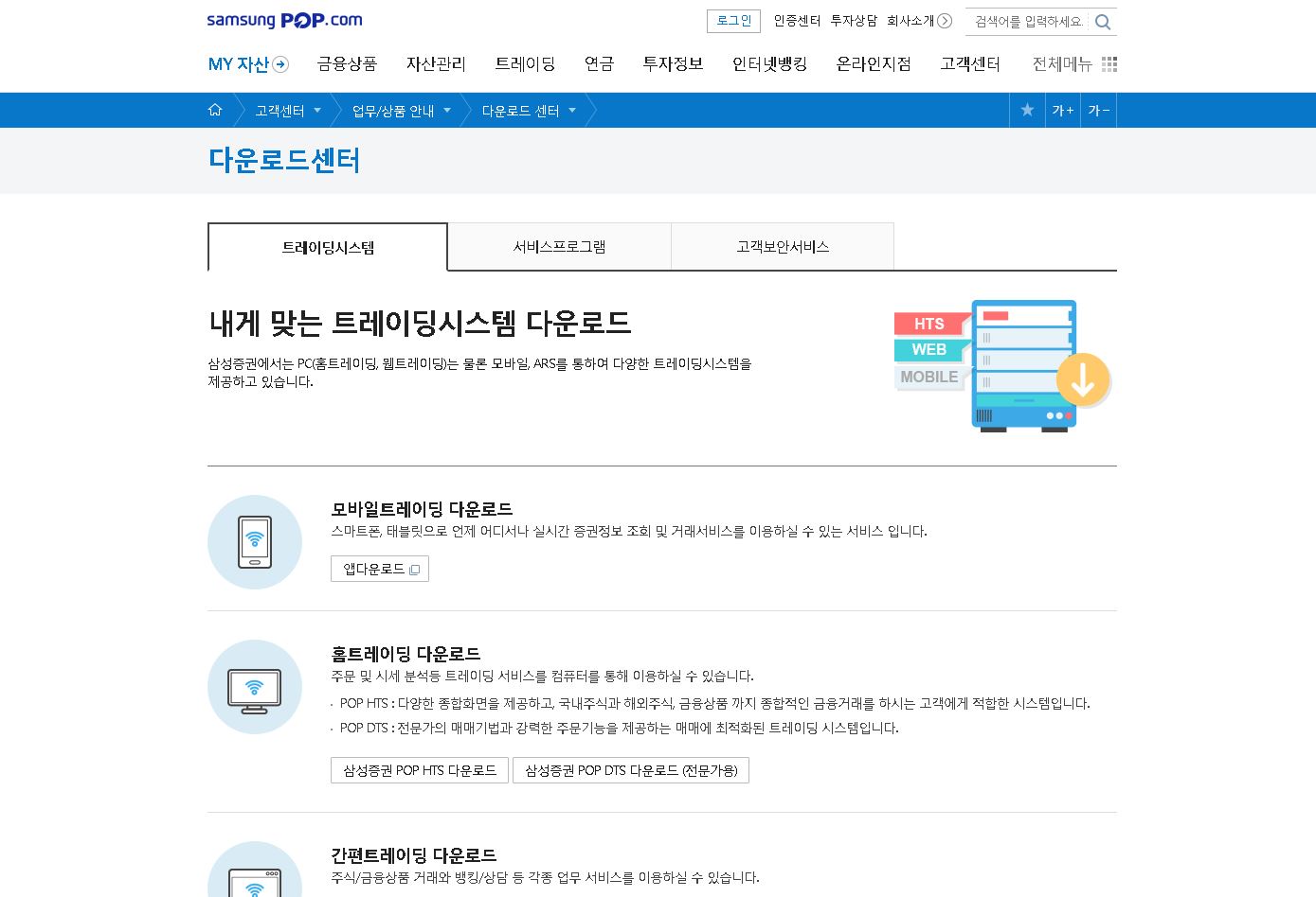 삼성증권 POP HTS 다운로드 홈페이지