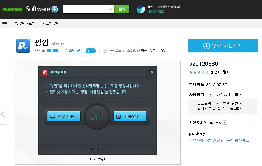 피시스토리 네이버카페에서 관련된 내용을 찾을 수 있는 핑업은 개인개발자가 패스트핑, 패스타핑 등의 프로그램과 유사하게 만든 것 같습니다.