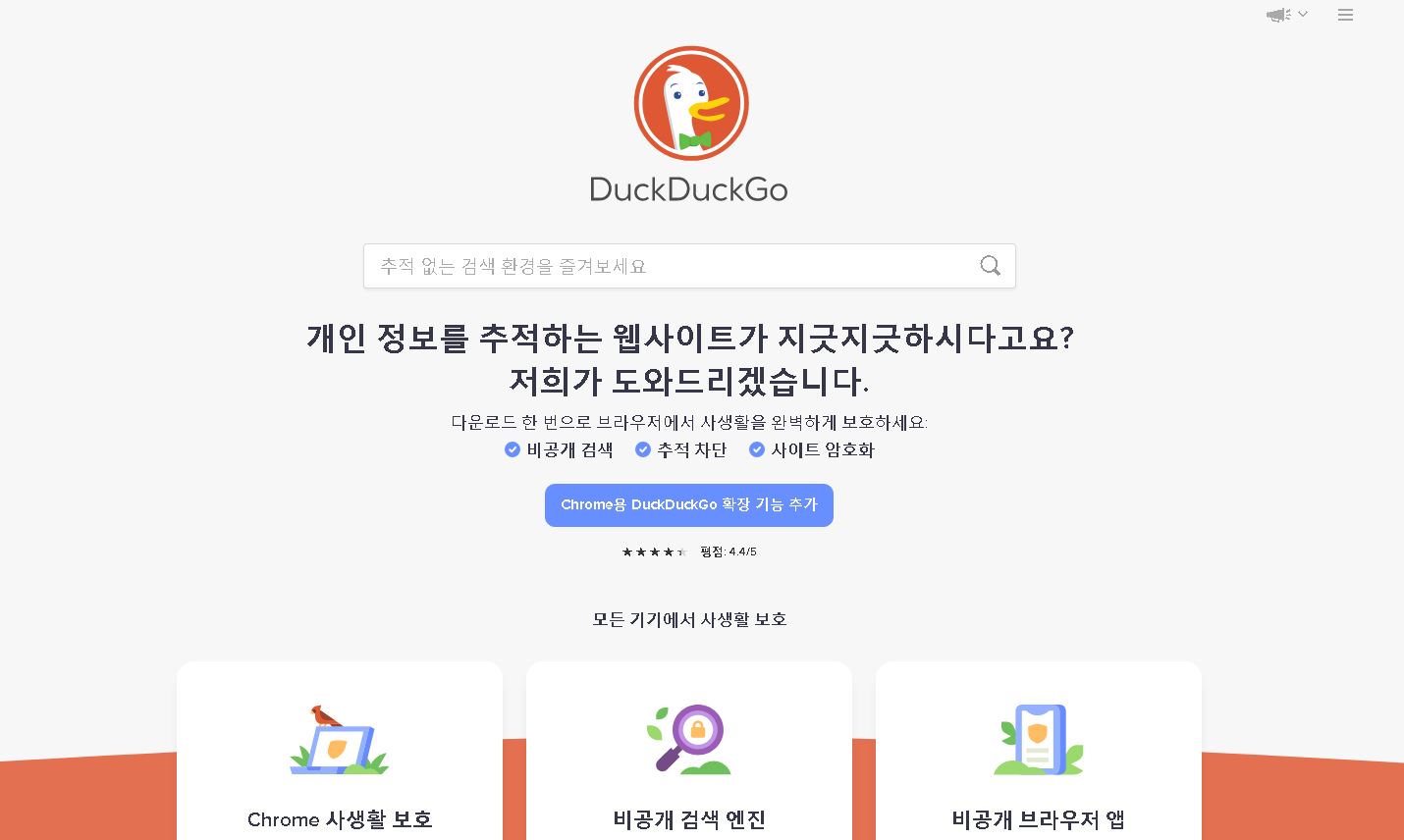 DuckDuckGo — 사생활 보호, 쉬워졌네요.