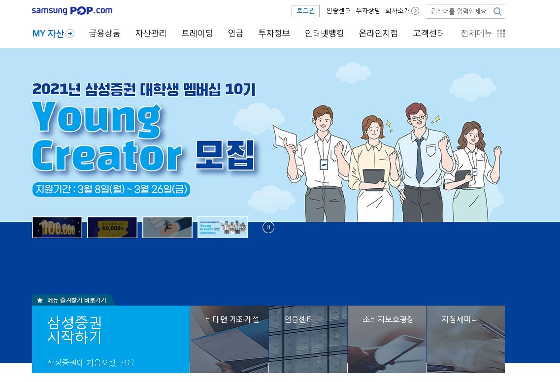 삼성증권 홈페이지는 samsungpop닷컴을 이용하여 접근이 가능하구요. 검색을 이용하시면 사이트에서 쉽게 들어가기가 가능합니다. 모바일에서는 애플리케이션을 이용하여 계좌개설이나 mts의 사용이 가능한 것으로 알고 있네요.