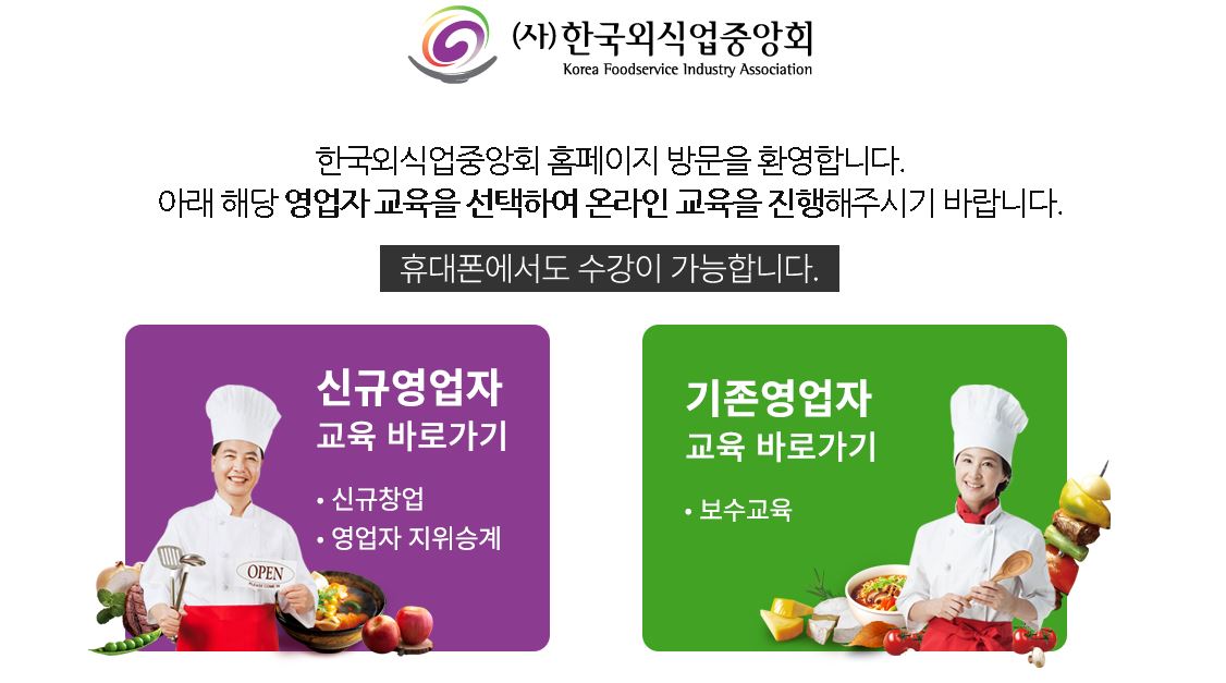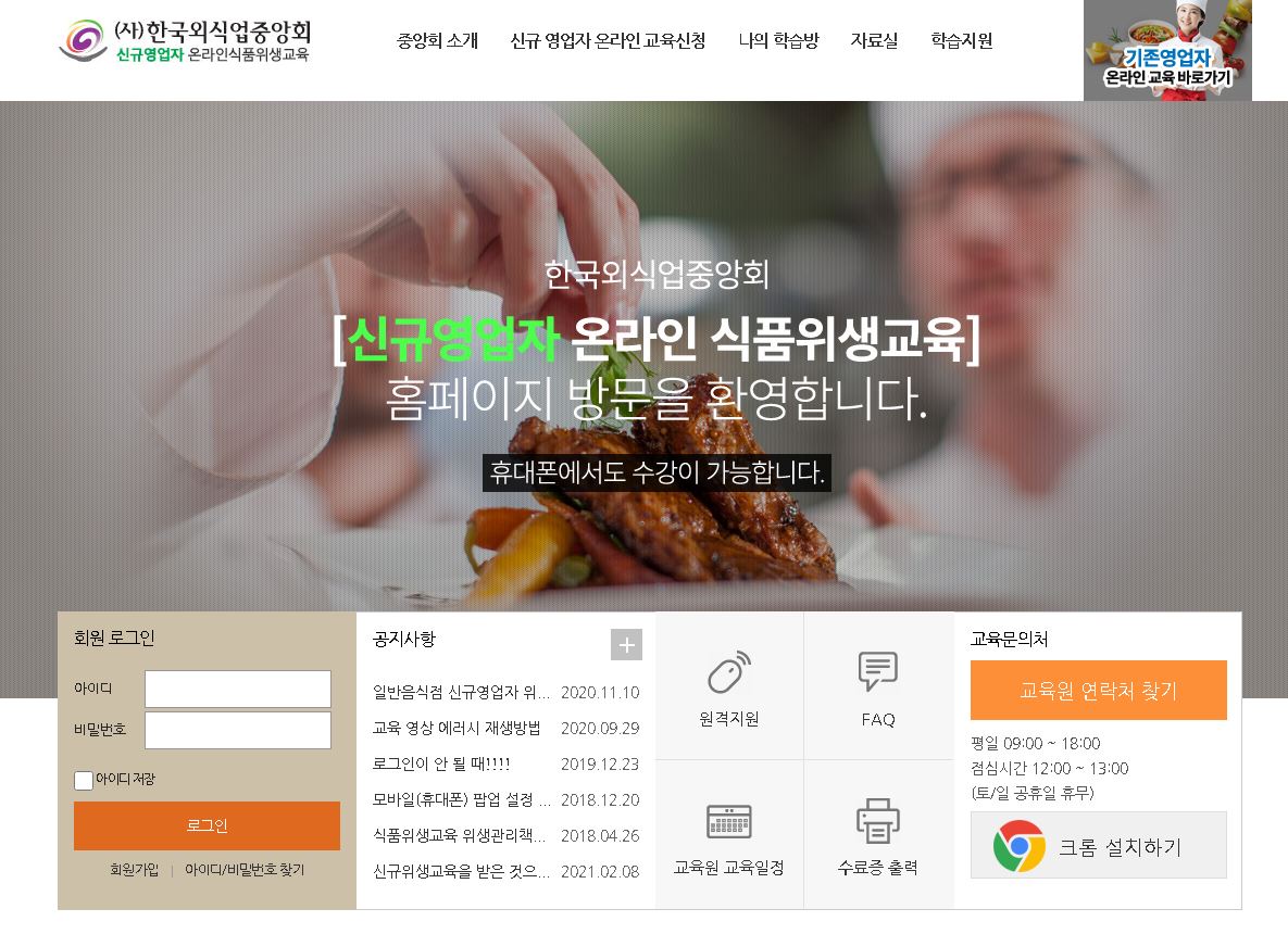 한국외식업중앙회에서는 2021년 영업자 교육을 진행하고 있습니다. 온라인위생교육 홈페이지를 통하여 신규영업자 교육과 더불어 기존영업자 보수교육이 진행되고 있다고 합니다.