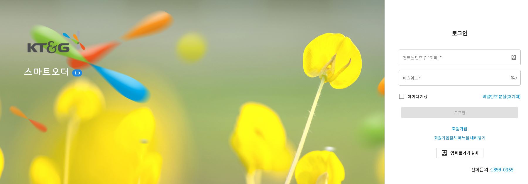 스마트오더 1.0 홈페이지는 order.ktng.com를 통하여 접속을 하시면 되구요. 접속 후에 로그인을 통하여 이용 가능합니다. 모바일 앱 바로가기 설치도 가능하니 참고하시고 이용하시면 될 것 같습니다.
