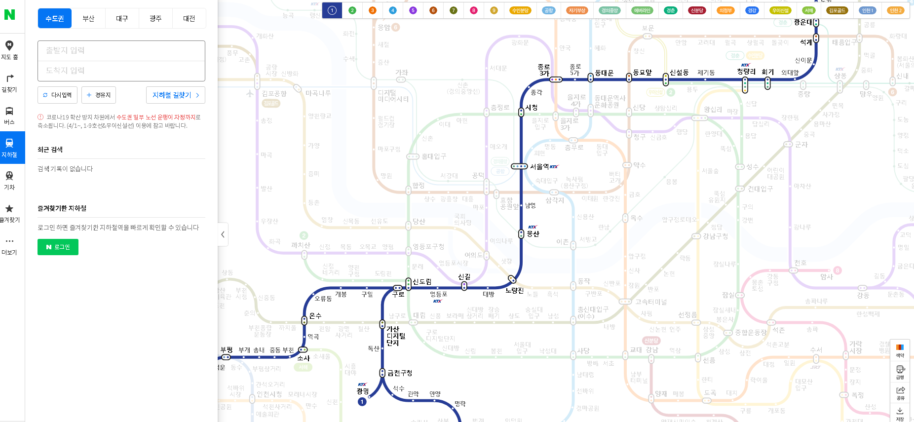 그럼 인터넷 지도를 이용하여 지하철 노선도 크게 보기 간편하게 해보시기 바랍니다.