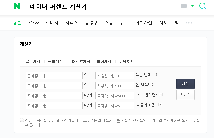 네이버 퍼센트 계산기 : 네이버 통합검색