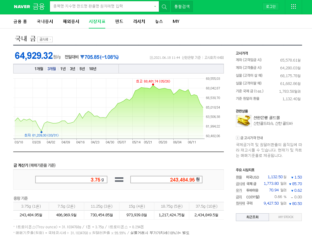 금시세 1돈가격