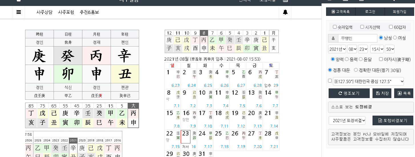 사주팔콤 만세력