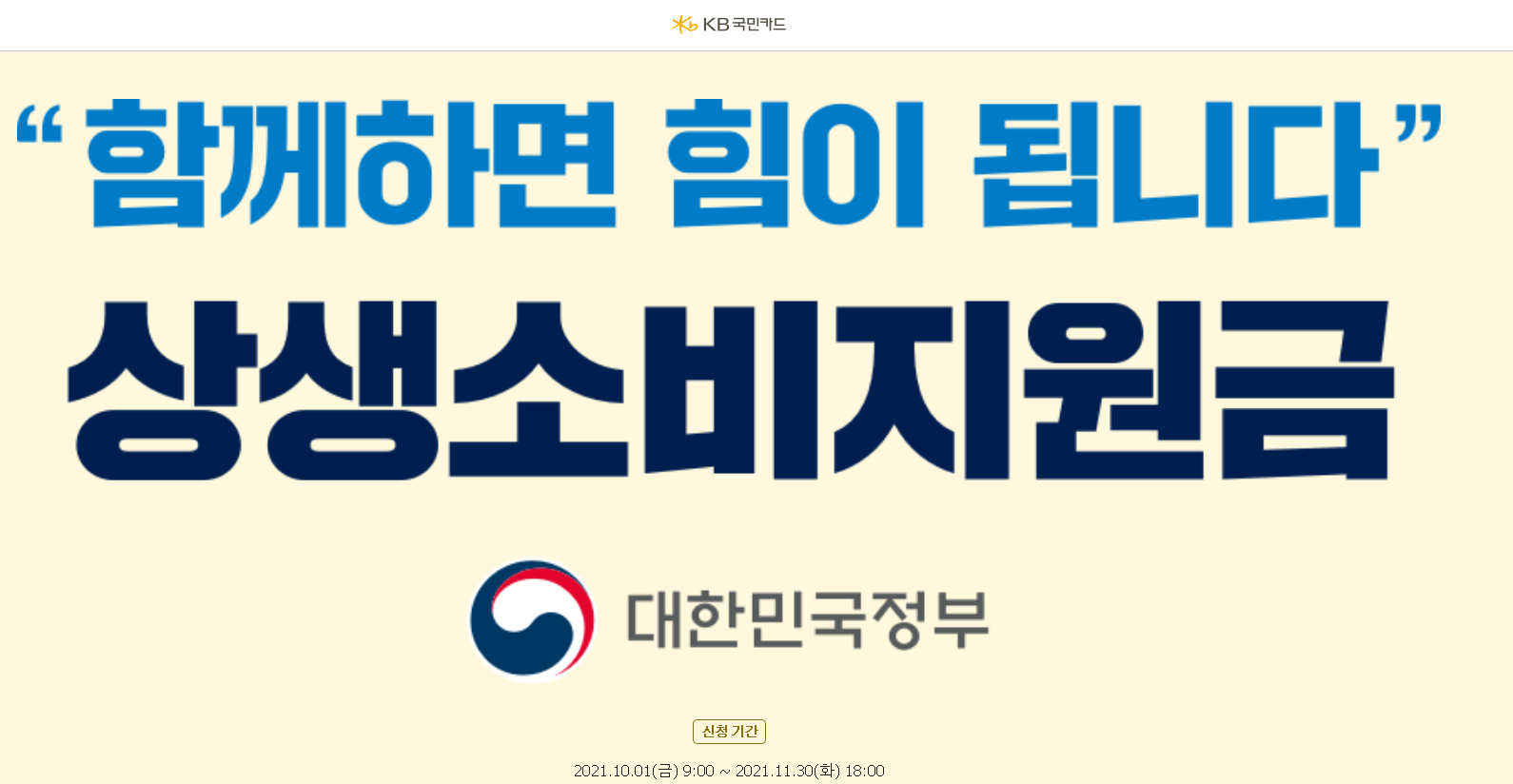 2021년 10월 1일부터 2개월 동안 진행이 되어진다고 하며 신청방법 사용처 등의 자세한 내용은 상생소비지원금 홈페이지에서 확인이 가능합니다.