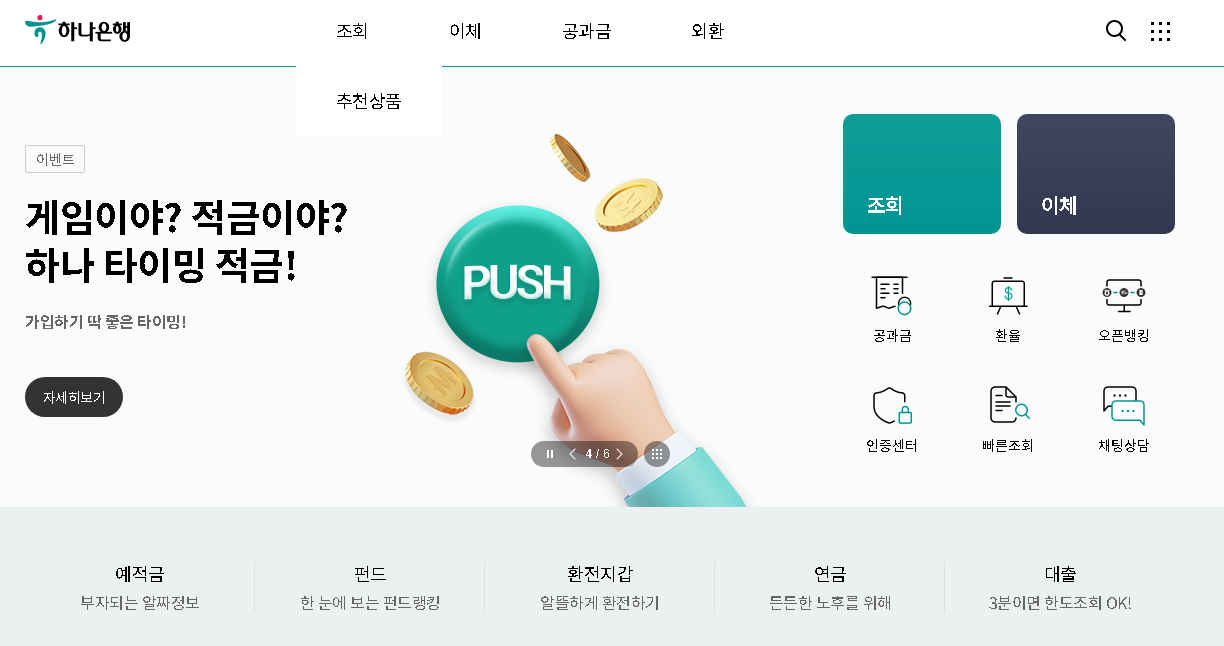 PC에서는 KEB하나은행 인터넷뱅킹 홈페이지에 접속을 해두신 후에 개인인터넷뱅킹으로 들어가시면 이용이 가능합니다. 모바일 같은 경우는 앱을 사용하게 되네요.