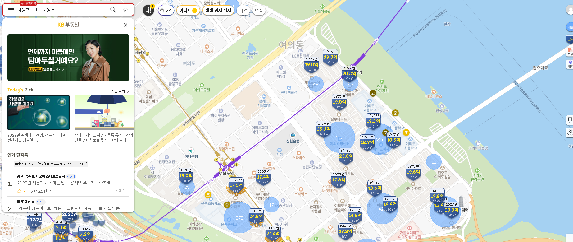 국민은행으로 잘 알려진 KB그룹의 KB부동산은 꿀시세, 꿀지도, 단지톡, 꿀매물, 꿀입지, 꿀정보, 꿀기능 등의 서비스를 제공하고 있습니다.