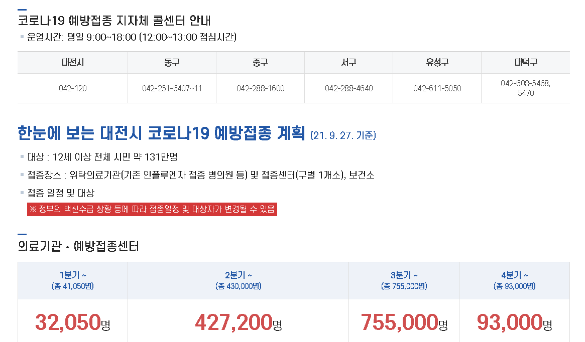 질병관리청 코로나19 백신 및 예방접종 정보안내