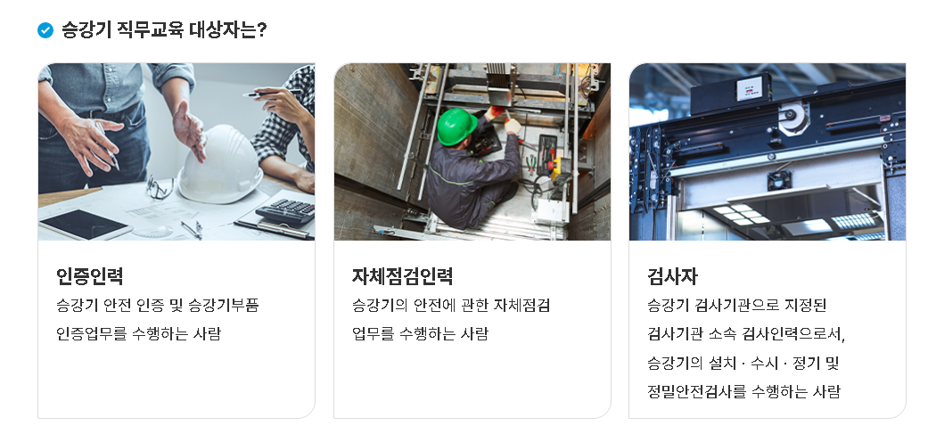 특히나 승강기 안전관리자 교육은 온라인 교육으로 이수를 하실 수 있기 때문에 교육 대상자 분들은 확인을 하시고 수강을 하시길 바랍니다.